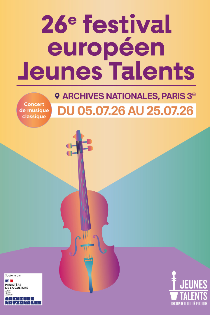 Jeunes Talents est heureux de vous annoncer que la 26e édition de son festival aura lieu du 5 au 25 juillet. Les concerts à Paris auront lieu principalement dans cet écrin en plein Paris qu’est la Cour des Grands Dépôts des Archives nationales, que nous remercions chaleureusement de leur soutien généreux et fidèle.